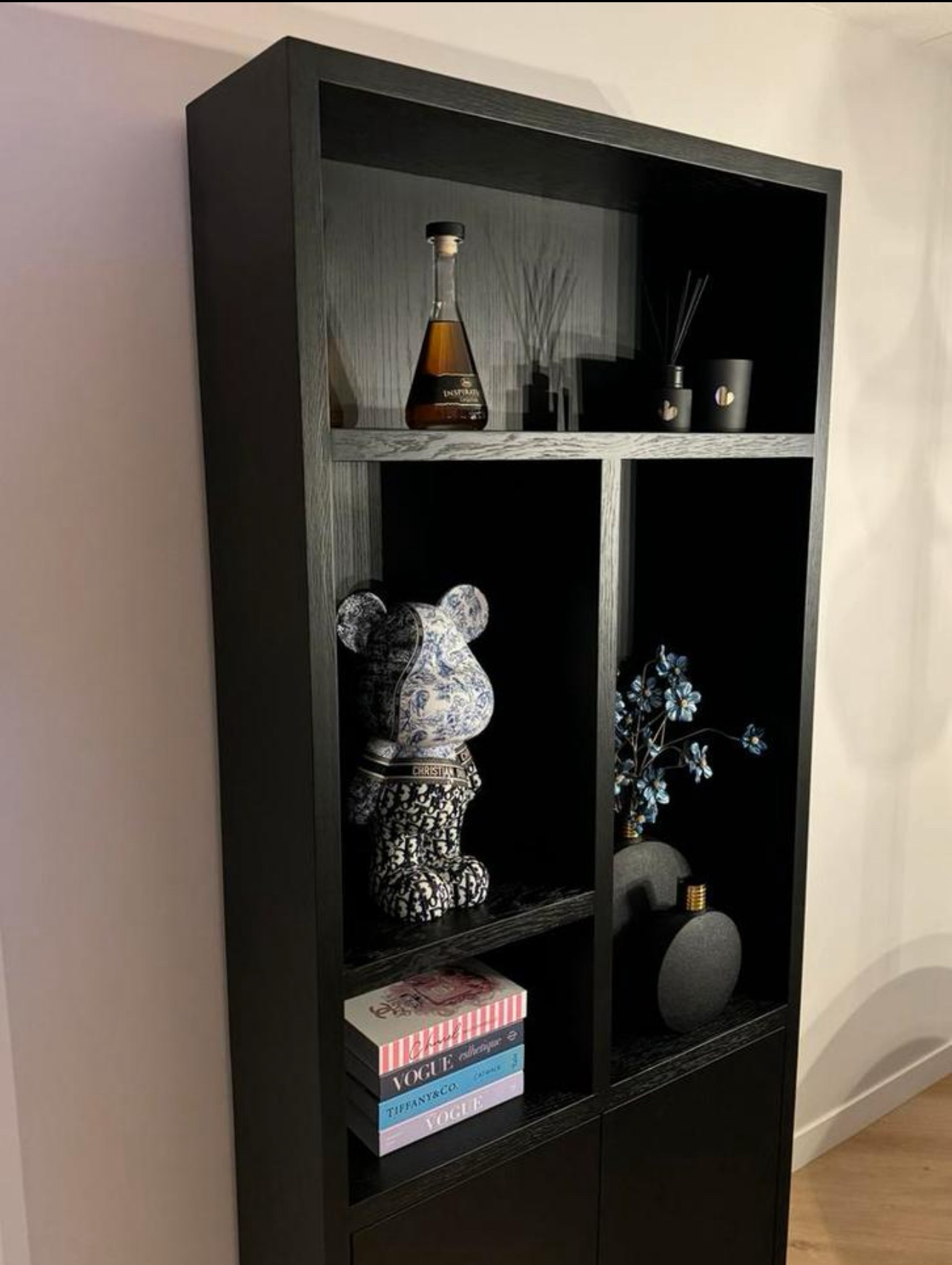 Luxe Black Oak Wandkast – Vakkenkast Zwart NIEUW