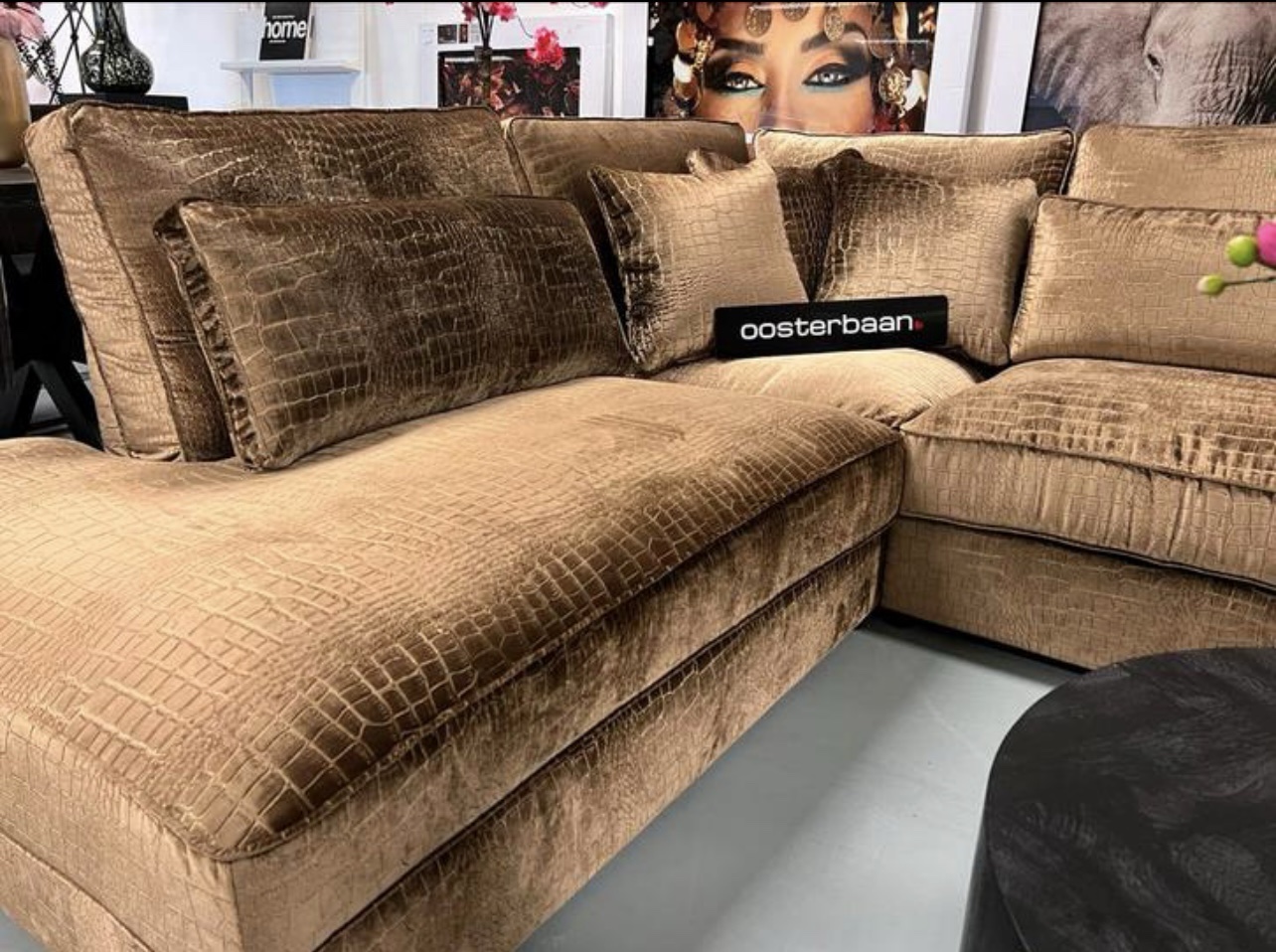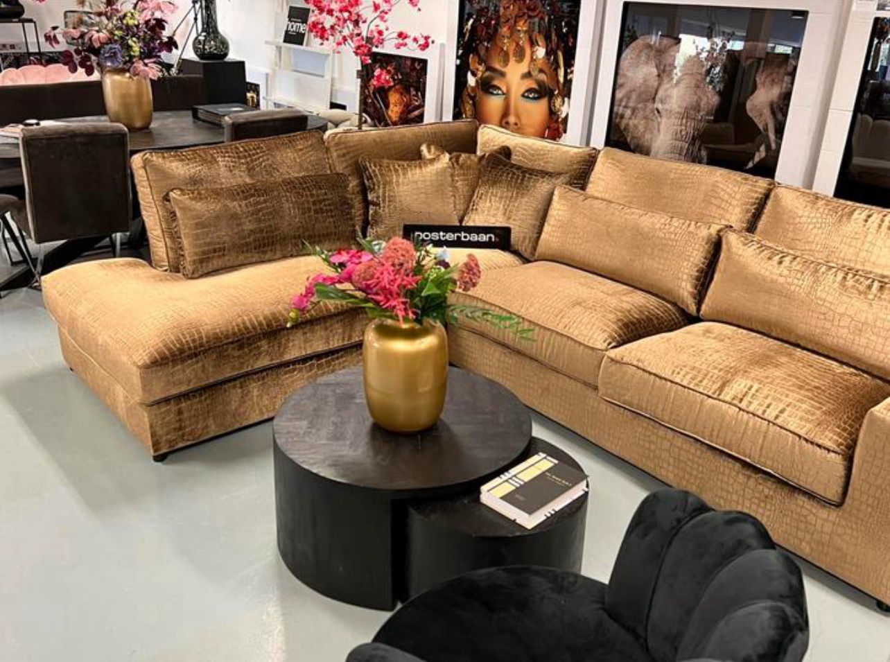 Luxe Velvet Croco Hoekbank Pocket 250x310cm – Goud