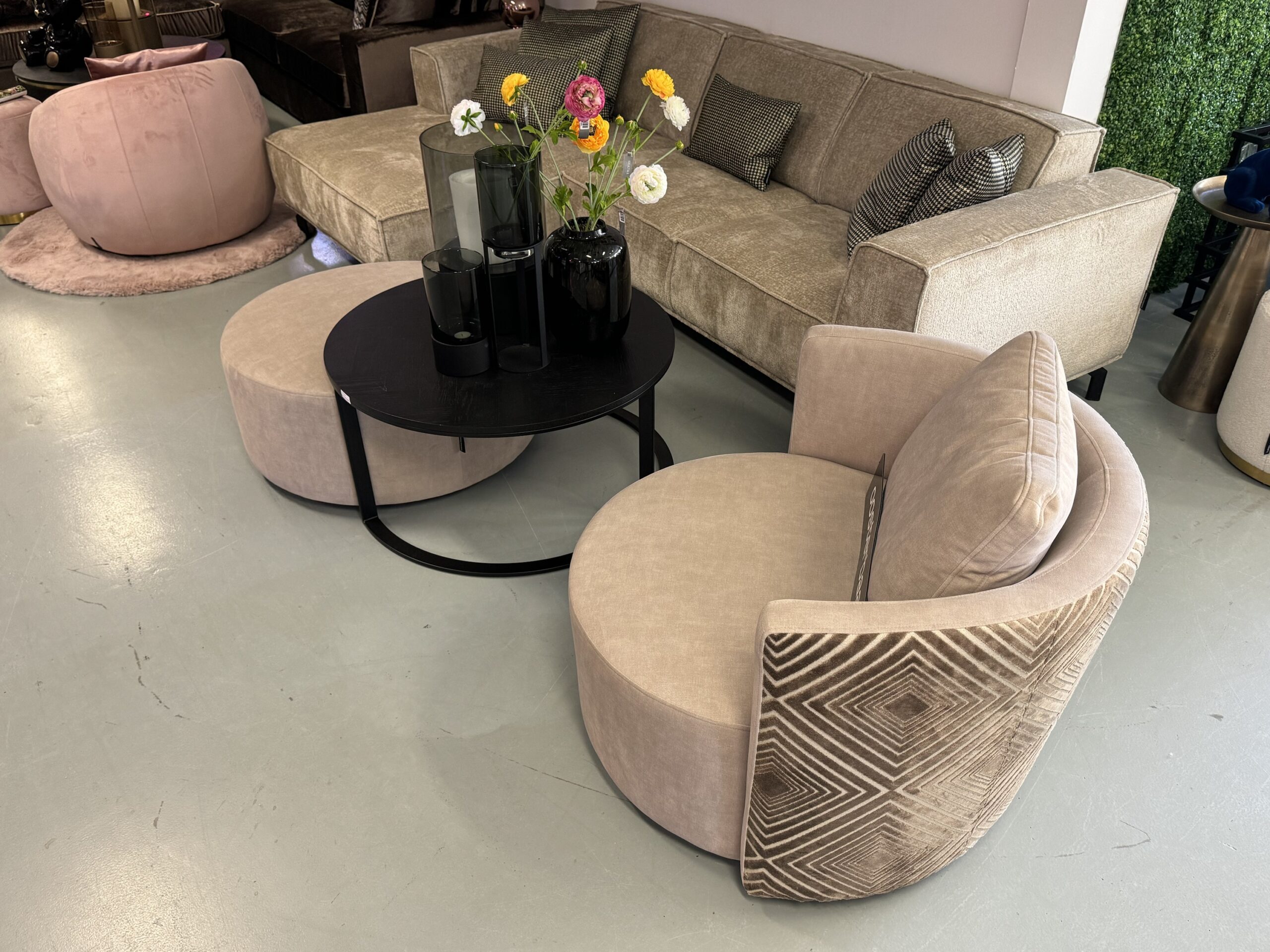 Luxe Velvet Draaifauteuil Anton + Poef – Two Tone Custom