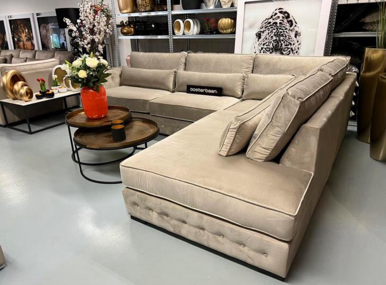 Luxe Velvet Hoekbank Chester 340x260cm NIEUW – Quartz Khaki