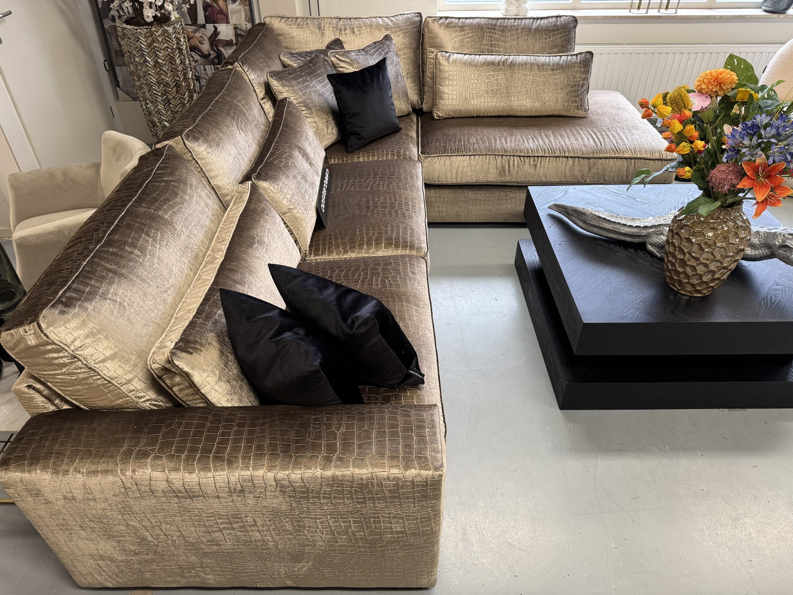 Luxe Velvet Croco Hoekbank Pocket 310x250cm NIEUW Goud Champagne